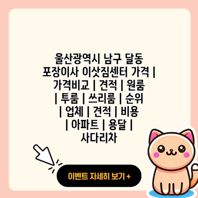 ✅ 울산 남구 달동 이사 비용을 비교해보세요! 모든 예산을 확인할 수 있습니다.