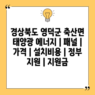 경상북도 영덕군 축산면 태양광 에너지 | 패널 | 가격 | 설치비용 | 정부 지원 | 지원금 에 대해 자주 묻는 질문 TOP 5