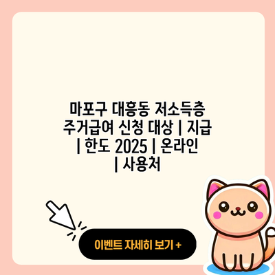 저소득층 주거급여는 마포구 대흥동 주민들에게 실질적인 주거 안정을 제공하는 중요한 제도입니다. 주거급여를 신청하여 경제적 부담을 줄이고, 자립의 기회를 마련하는 것이 중요합니다. 지금 즉시 신청과 준비를 시작해 보세요!