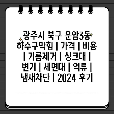 광주시 북구 운암3동 하수구막힘 | 가격 | 비용 | 기름제거 | 싱크대 | 변기 | 세면대 | 역류 | 냄새차단 | 2024 후기