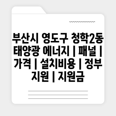 부산시 영도구 청학2동 태양광 에너지 | 패널 | 가격 | 설치비용 | 정부 지원 | 지원금