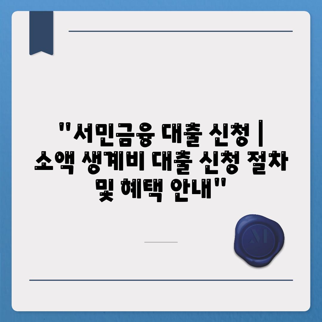 “서민금융 대출 신청 | 소액 생계비 대출 신청 절차 및 혜택 안내”